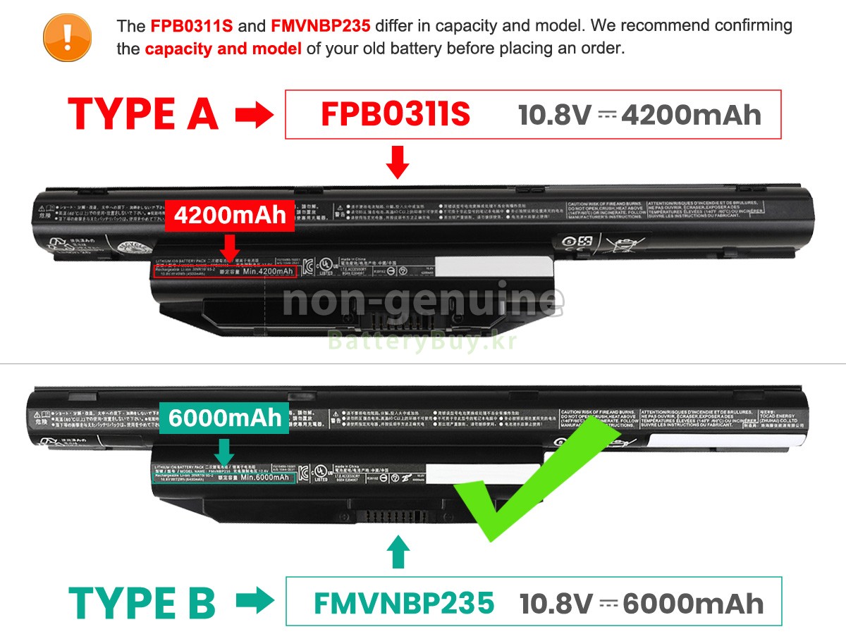 2 고객님의 원 Fujitsu FPCBP416 배터리의 전압과 용량이 당사 제품과의 일치여부를 확인 후 당사의 확대 이미지에서 인터페이스, 대체적인 모양의 일치 여부를 확인하십시오.