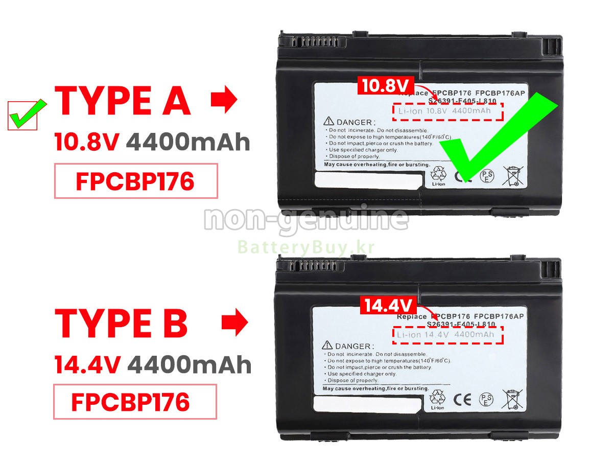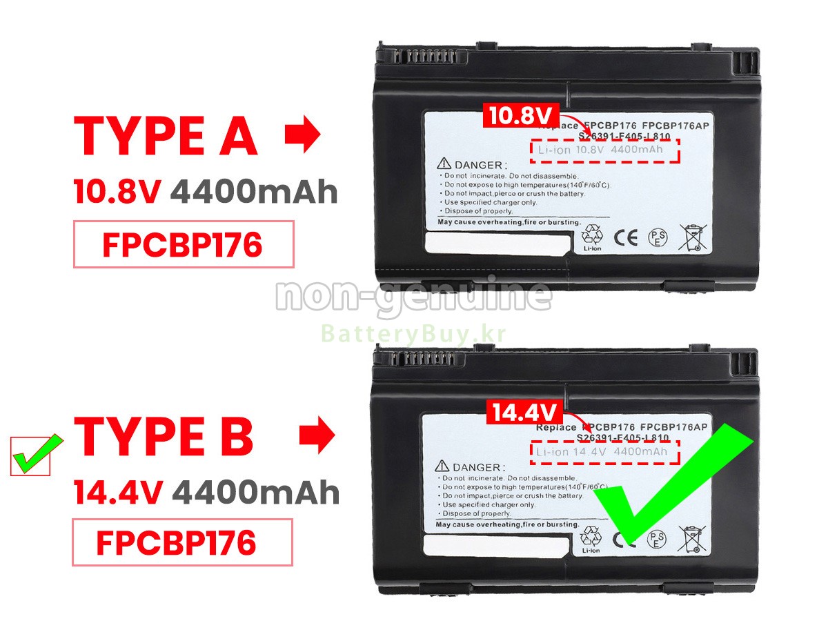 2 고객님의 원 Fujitsu LifeBook E8410 배터리의 전압과 용량이 당사 제품과의 일치여부를 확인 후 당사의 확대 이미지에서 인터페이스, 대체적인 모양의 일치 여부를 확인하십시오.