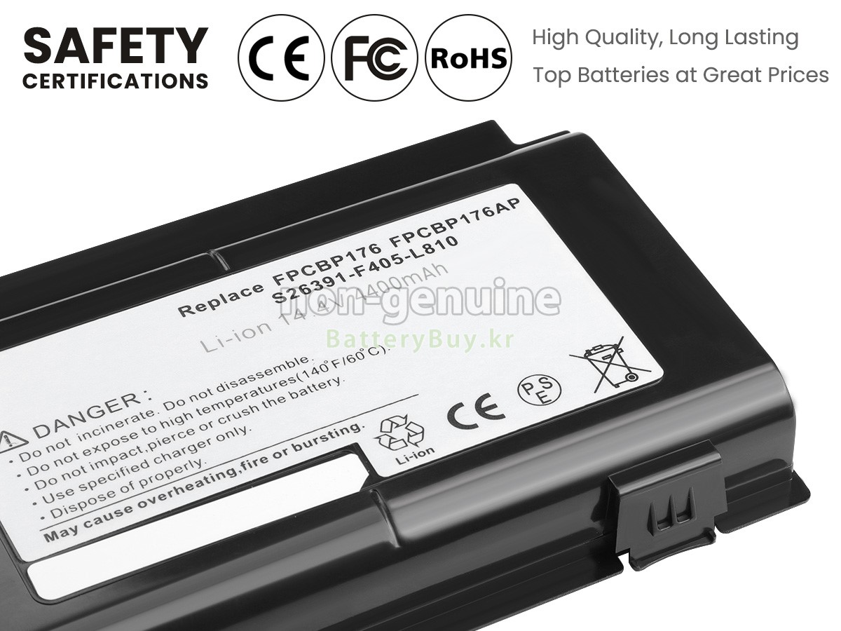 본 새로운 Fujitsu LifeBook E8410 대체용 배터리는 삼성, 파나소닉과 LG 등 오리지날 공장의 고품질 리튬이온셀을 적용하였고, 배터리의 케이스는 내용성 ABS플라스틱을 사용한 제품입니다. BatteryBuy.kr는 제품 안전성에 대해 요구가 엄격한 바 해당 Fujitsu LifeBook E8410 배터리 제품은 전부KC, CE, UL, ROHS, ISO 9001/9002 등 일련의 안전인증을 통과하여 국제표준에 부합되며 오리지날사의 규격과 100%로 호환가능하며 오리지널 LifeBook E8410 배터리와 완전 매칭 심지어 초과 가능한 성능을 자랑하고 있습니다. 해당 Fujitsu LifeBook E8410 배터리의 충/방전 주기는 600회좌우인 바 최적의 배터리 라이프를 선사하고 있습니다.