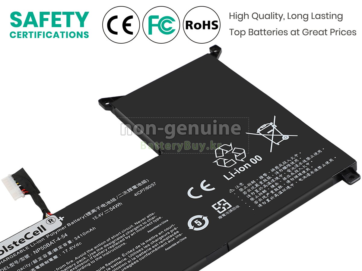 본 새로운 Gigabyte G5 KF5 대체용 배터리는 삼성, 파나소닉과 LG 등 오리지날 공장의 고품질 리튬이온셀을 적용하였고, 배터리의 케이스는 내용성 ABS플라스틱을 사용한 제품입니다. BatteryBuy.kr는 제품 안전성에 대해 요구가 엄격한 바 해당 Gigabyte G5 KF5 배터리 제품은 전부KC, CE, UL, ROHS, ISO 9001/9002 등 일련의 안전인증을 통과하여 국제표준에 부합되며 오리지날사의 규격과 100%로 호환가능하며 오리지널 G5 KF5 배터리와 완전 매칭 심지어 초과 가능한 성능을 자랑하고 있습니다. 해당 Gigabyte G5 KF5 배터리의 충/방전 주기는 600회좌우인 바 최적의 배터리 라이프를 선사하고 있습니다.