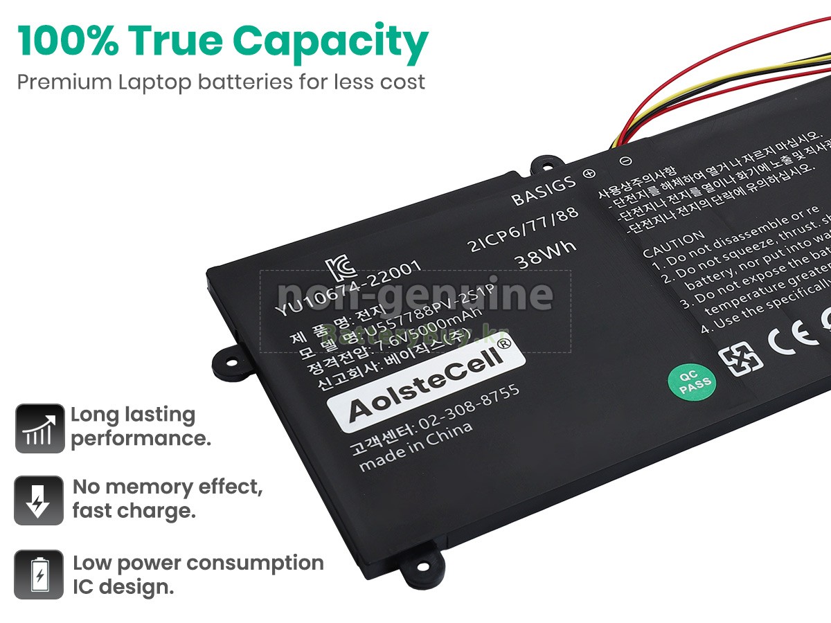 본 새로운 Haier UTL-557788-2S 대체용 배터리는 삼성, 파나소닉과 LG 등 오리지날 공장의 고품질 리튬이온셀을 적용하였고, 배터리의 케이스는 내용성 ABS플라스틱을 사용한 제품입니다. BatteryBuy.kr는 제품 안전성에 대해 요구가 엄격한 바 해당 Haier UTL-557788-2S 배터리 제품은 전부KC, CE, UL, ROHS, ISO 9001/9002 등 일련의 안전인증을 통과하여 국제표준에 부합되며 오리지날사의 규격과 100%로 호환가능하며 오리지널 UTL-557788-2S 배터리와 완전 매칭 심지어 초과 가능한 성능을 자랑하고 있습니다. 해당 Haier UTL-557788-2S 배터리의 충/방전 주기는 600회좌우인 바 최적의 배터리 라이프를 선사하고 있습니다.