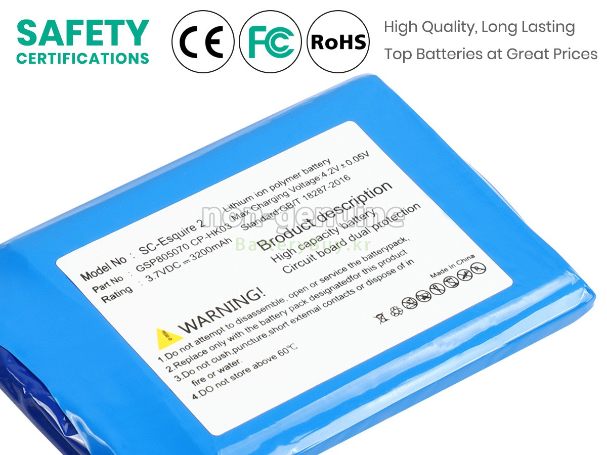 본 새로운 Harman Kardon ESQUIRE2 대체용 배터리는 삼성, 파나소닉과 LG 등 오리지날 공장의 고품질 리튬이온셀을 적용하였고, 배터리의 케이스는 내용성 ABS플라스틱을 사용한 제품입니다. BatteryBuy.kr는 제품 안전성에 대해 요구가 엄격한 바 해당 Harman Kardon ESQUIRE2 스피커 배터리 제품은 전부KC, CE, UL, ROHS, ISO 9001/9002 등 일련의 안전인증을 통과하여 국제표준에 부합되며 오리지날사의 규격과 100%로 호환가능하며 오리지널 ESQUIRE2 배터리와 완전 매칭 심지어 초과 가능한 성능을 자랑하고 있습니다. 해당 Harman Kardon ESQUIRE2 배터리의 충/방전 주기는 600회좌우인 바 최적의 배터리 라이프를 선사하고 있습니다.