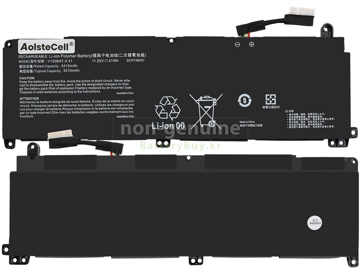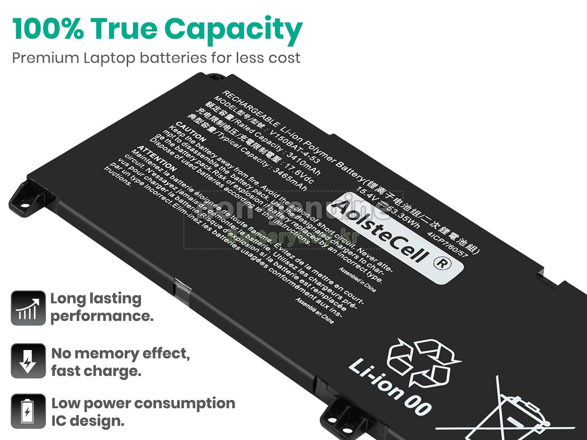 본 새로운 Hasee V150BAT-4-53 대체용 배터리는 삼성, 파나소닉과 LG 등 오리지날 공장의 고품질 리튬이온셀을 적용하였고, 배터리의 케이스는 내용성 ABS플라스틱을 사용한 제품입니다. BatteryBuy.kr는 제품 안전성에 대해 요구가 엄격한 바 해당 Hasee V150BAT-4-53 배터리 제품은 전부KC, CE, UL, ROHS, ISO 9001/9002 등 일련의 안전인증을 통과하여 국제표준에 부합되며 오리지날사의 규격과 100%로 호환가능하며 오리지널 V150BAT-4-53 배터리와 완전 매칭 심지어 초과 가능한 성능을 자랑하고 있습니다. 해당 Hasee V150BAT-4-53 배터리의 충/방전 주기는 600회좌우인 바 최적의 배터리 라이프를 선사하고 있습니다.