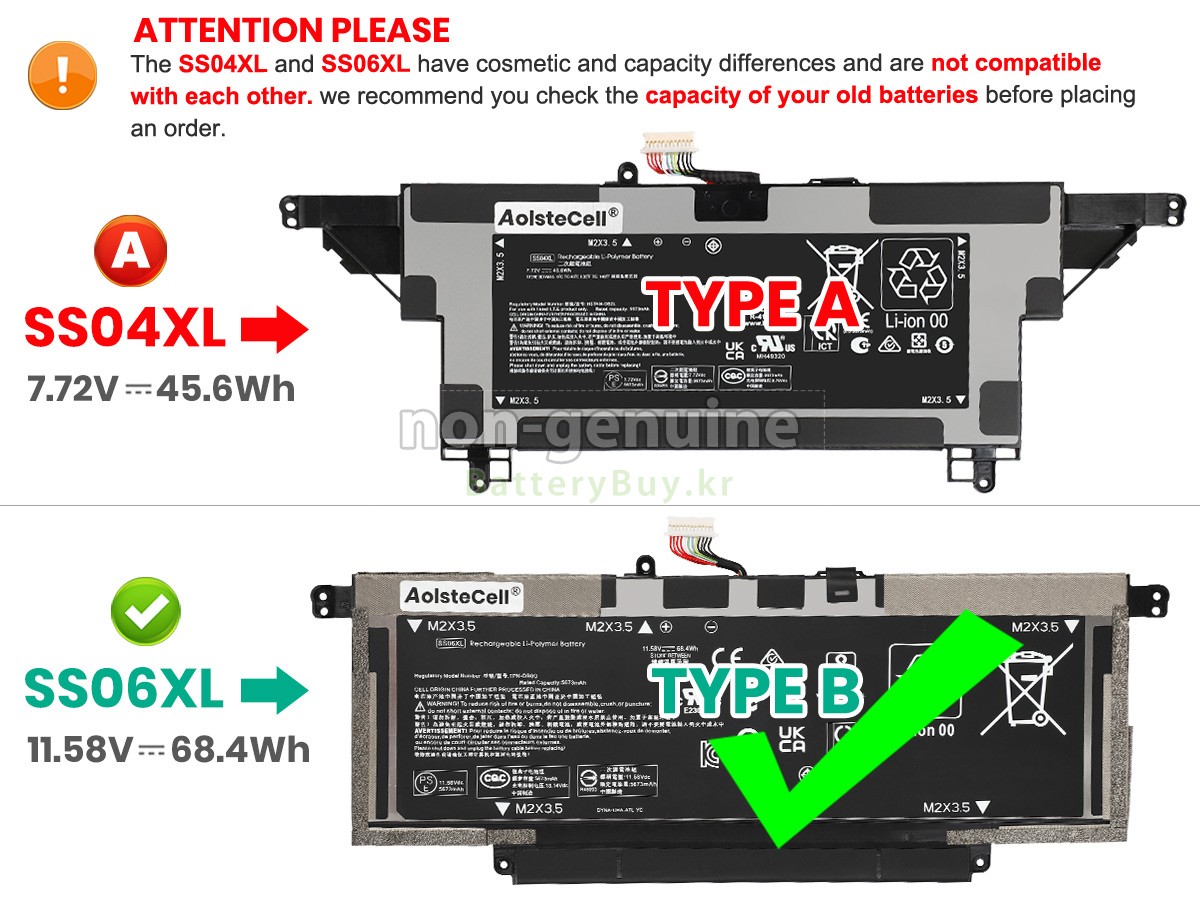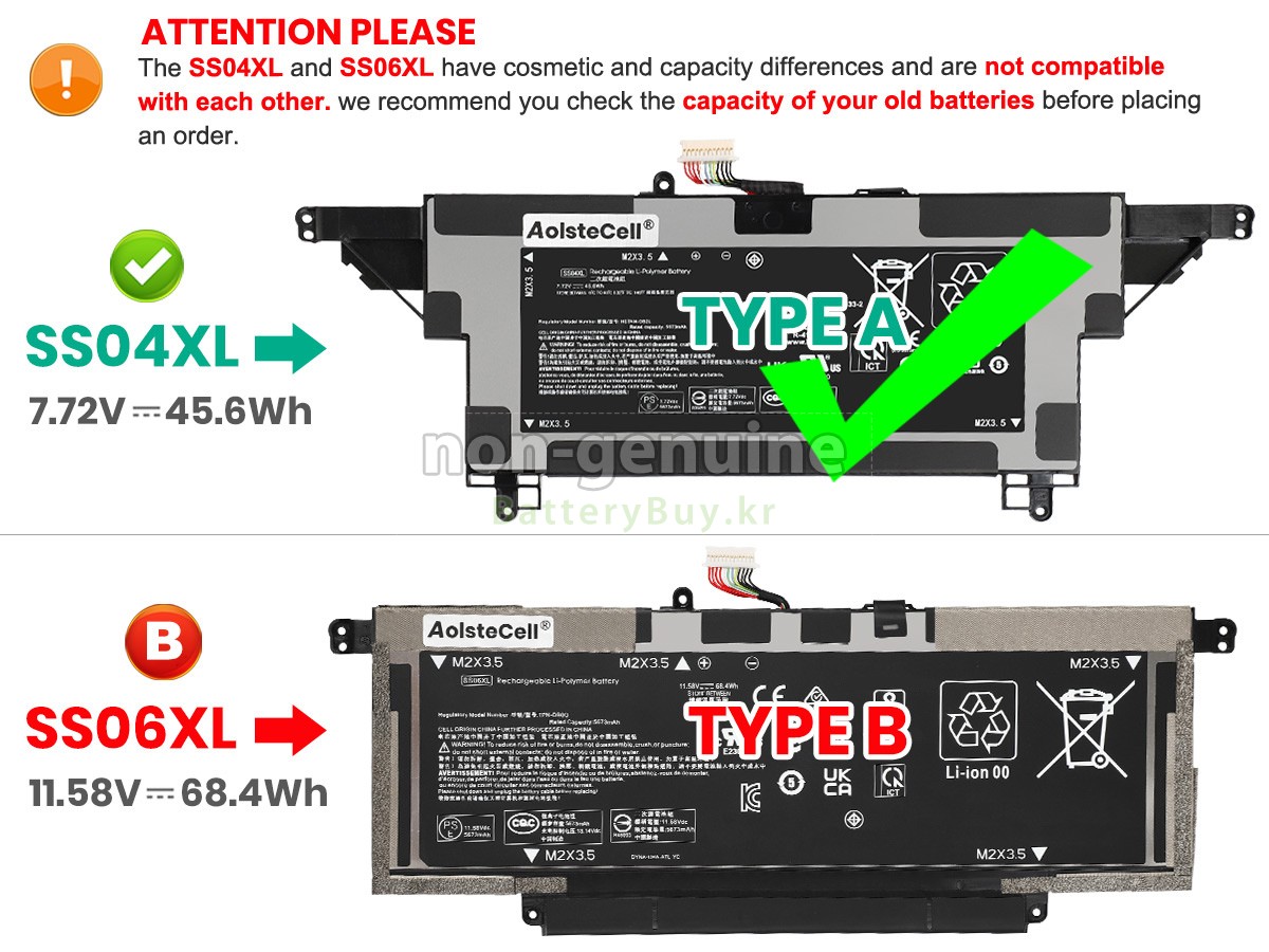 2 고객님의 원 HP Elite DRAGONFLY 13.5 INCH G3 (4J039AV)-6L619PA 배터리의 전압과 용량이 당사 제품과의 일치여부를 확인 후 당사의 확대 이미지에서 인터페이스, 대체적인 모양의 일치 여부를 확인하십시오.