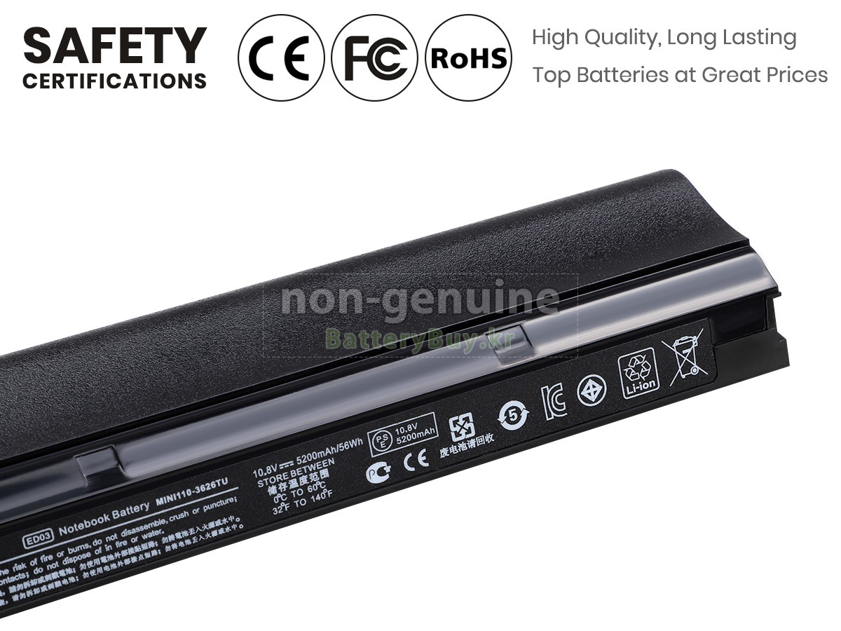 본 새로운 HP Mini 110-3510NR 대체용 배터리는 삼성, 파나소닉과 LG 등 오리지날 공장의 고품질 리튬이온셀을 적용하였고, 배터리의 케이스는 내용성 ABS플라스틱을 사용한 제품입니다. BatteryBuy.kr는 제품 안전성에 대해 요구가 엄격한 바 해당 HP Mini 110-3510NR 배터리 제품은 전부KC, CE, UL, ROHS, ISO 9001/9002 등 일련의 안전인증을 통과하여 국제표준에 부합되며 오리지날사의 규격과 100%로 호환가능하며 오리지널 Mini 110-3510NR 배터리와 완전 매칭 심지어 초과 가능한 성능을 자랑하고 있습니다. 해당 HP Mini 110-3510NR 배터리의 충/방전 주기는 600회좌우인 바 최적의 배터리 라이프를 선사하고 있습니다.