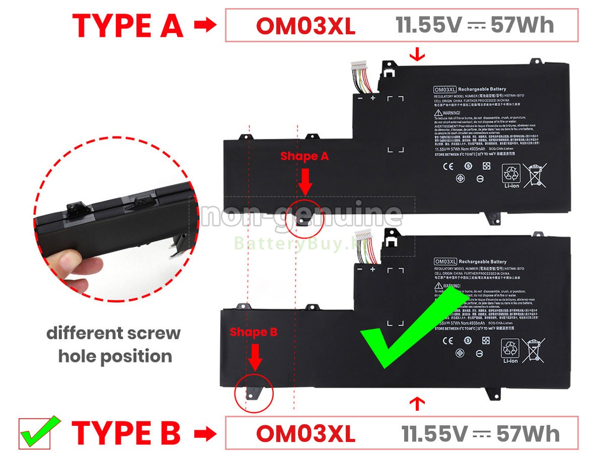 There are 2 types battery for OM03XL, before placing an order please open your laptop to check your old battery, ensure buy one correct battery for your laptop. - 상품 번호KRB1031