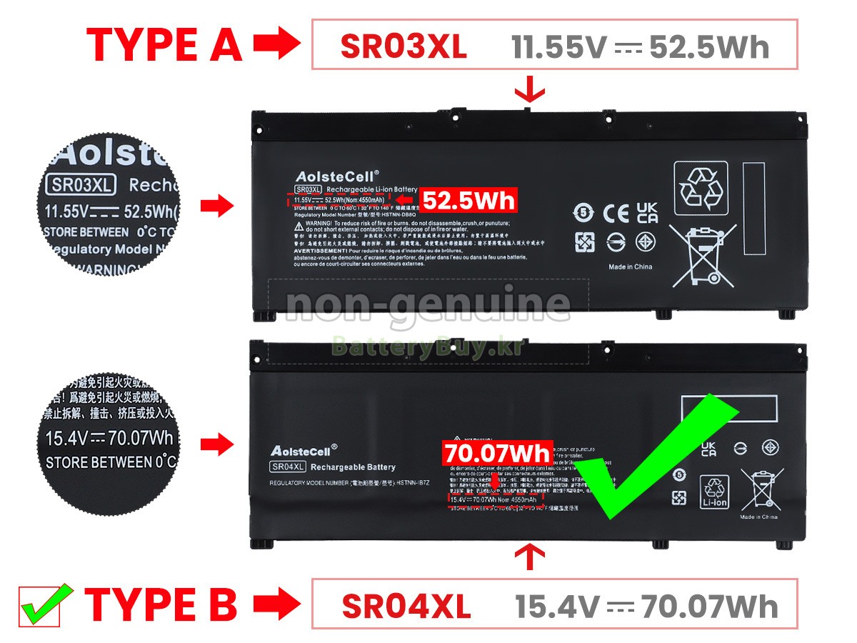 2 고객님의 원 HP Pavilion Gaming 17-CD1046NB 배터리의 전압과 용량이 당사 제품과의 일치여부를 확인 후 당사의 확대 이미지에서 인터페이스, 대체적인 모양의 일치 여부를 확인하십시오.