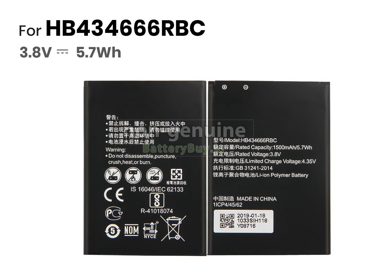 본 새로운 Huawei HB434666RBC 대체용 배터리는 삼성, 파나소닉과 LG 등 오리지날 공장의 고품질 리튬이온셀을 적용하였고, 배터리의 케이스는 내용성 ABS플라스틱을 사용한 제품입니다. BatteryBuy.kr는 제품 안전성에 대해 요구가 엄격한 바 해당 Huawei HB434666RBC 배터리 제품은 전부KC, CE, UL, ROHS, ISO 9001/9002 등 일련의 안전인증을 통과하여 국제표준에 부합되며 오리지날사의 규격과 100%로 호환가능하며 오리지널 HB434666RBC 배터리와 완전 매칭 심지어 초과 가능한 성능을 자랑하고 있습니다. 해당 Huawei HB434666RBC 배터리의 충/방전 주기는 600회좌우인 바 최적의 배터리 라이프를 선사하고 있습니다.