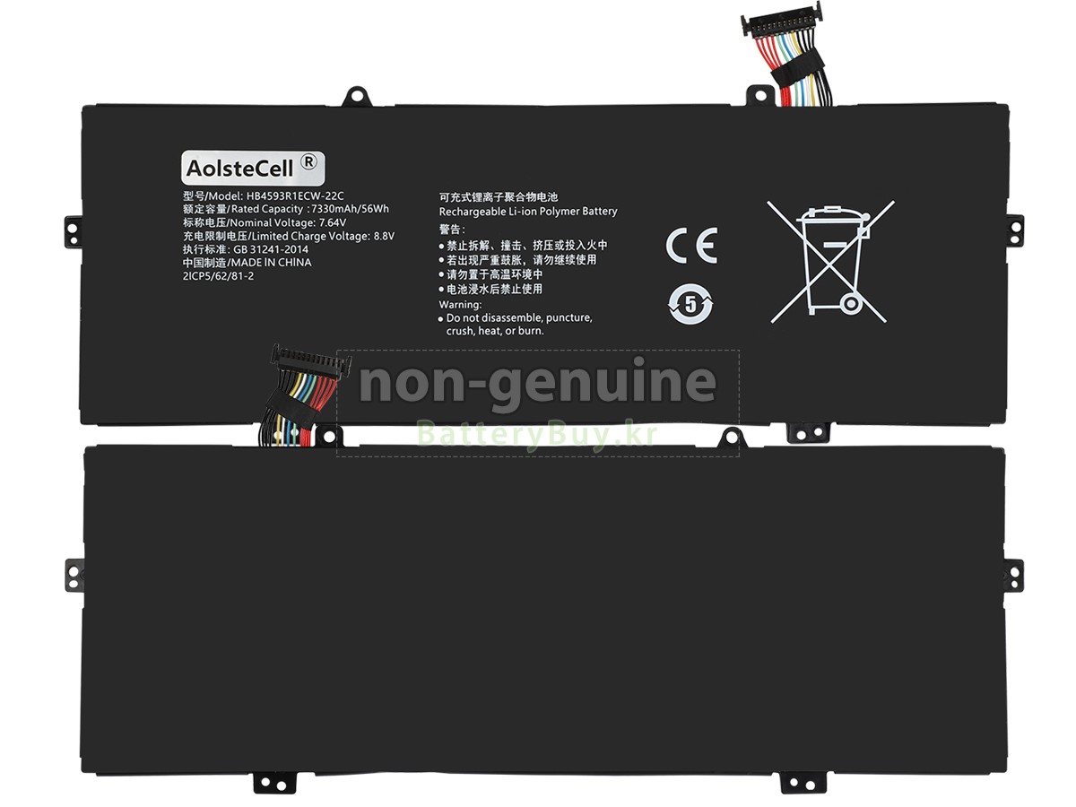 본 새로운 Huawei HB4593R1ECW-22C 대체용 배터리는 삼성, 파나소닉과 LG 등 오리지날 공장의 고품질 리튬이온셀을 적용하였고, 배터리의 케이스는 내용성 ABS플라스틱을 사용한 제품입니다. BatteryBuy.kr는 제품 안전성에 대해 요구가 엄격한 바 해당 Huawei HB4593R1ECW-22C 배터리 제품은 전부KC, CE, UL, ROHS, ISO 9001/9002 등 일련의 안전인증을 통과하여 국제표준에 부합되며 오리지날사의 규격과 100%로 호환가능하며 오리지널 HB4593R1ECW-22C 배터리와 완전 매칭 심지어 초과 가능한 성능을 자랑하고 있습니다. 해당 Huawei HB4593R1ECW-22C 배터리의 충/방전 주기는 600회좌우인 바 최적의 배터리 라이프를 선사하고 있습니다.