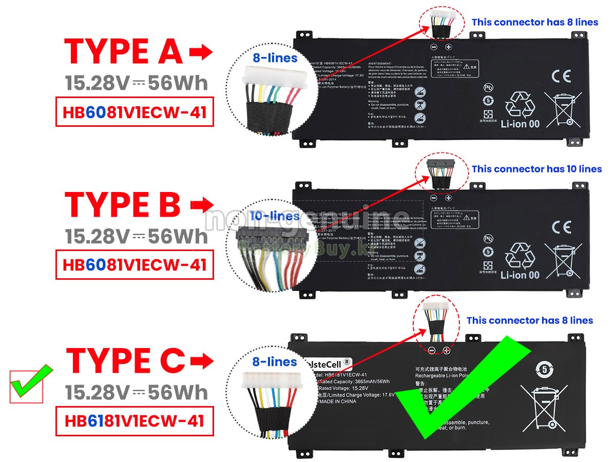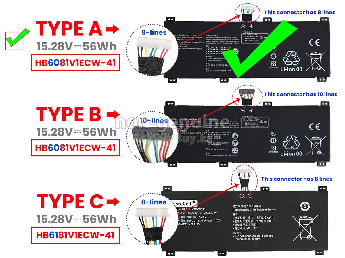 There are 2 types battery, before placing an order please open your laptop to check your old battery first, ensure it's the same as ours. Type A battery's connector is white and has 8 Lines. - 상품 번호KRB2060