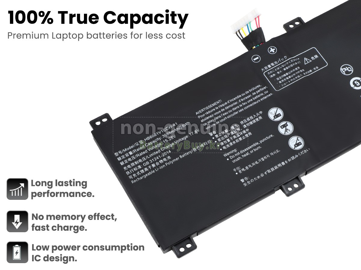 본 새로운 Huawei HVY-WAQ9W 대체용 배터리는 삼성, 파나소닉과 LG 등 오리지날 공장의 고품질 리튬이온셀을 적용하였고, 배터리의 케이스는 내용성 ABS플라스틱을 사용한 제품입니다. BatteryBuy.kr는 제품 안전성에 대해 요구가 엄격한 바 해당 Huawei HVY-WAQ9W 배터리 제품은 전부KC, CE, UL, ROHS, ISO 9001/9002 등 일련의 안전인증을 통과하여 국제표준에 부합되며 오리지날사의 규격과 100%로 호환가능하며 오리지널 HVY-WAQ9W 배터리와 완전 매칭 심지어 초과 가능한 성능을 자랑하고 있습니다. 해당 Huawei HVY-WAQ9W 배터리의 충/방전 주기는 600회좌우인 바 최적의 배터리 라이프를 선사하고 있습니다.