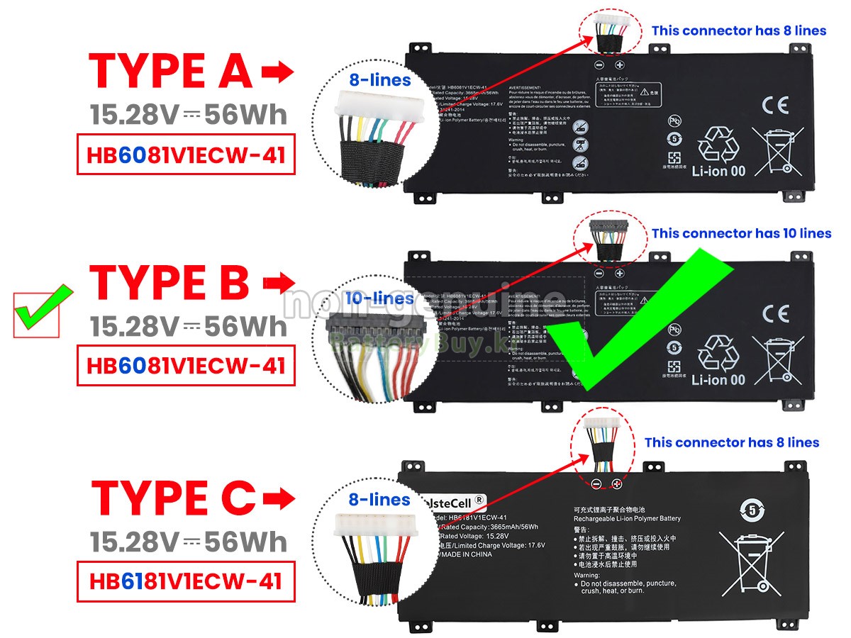 There are 2 types battery, before placing an order please open your laptop to check your old battery first, ensure it's the same as ours. Type B battery's connector is black and has 10 Lines. - 상품 번호KRB2061