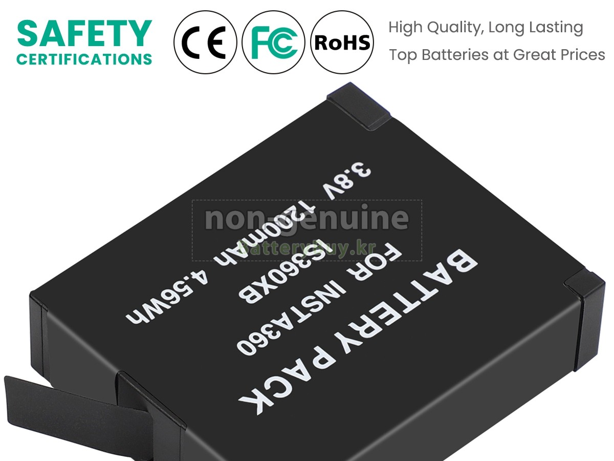 본 새로운 Insta360 ONE X 대체용 배터리는 삼성, 파나소닉과 LG 등 오리지날 공장의 고품질 리튬이온셀을 적용하였고, 배터리의 케이스는 내용성 ABS플라스틱을 사용한 제품입니다. BatteryBuy.kr는 제품 안전성에 대해 요구가 엄격한 바 해당 Insta360 ONE X 배터리 제품은 전부KC, CE, UL, ROHS, ISO 9001/9002 등 일련의 안전인증을 통과하여 국제표준에 부합되며 오리지날사의 규격과 100%로 호환가능하며 오리지널 ONE X 배터리와 완전 매칭 심지어 초과 가능한 성능을 자랑하고 있습니다. 해당 Insta360 ONE X 배터리의 충/방전 주기는 600회좌우인 바 최적의 배터리 라이프를 선사하고 있습니다.