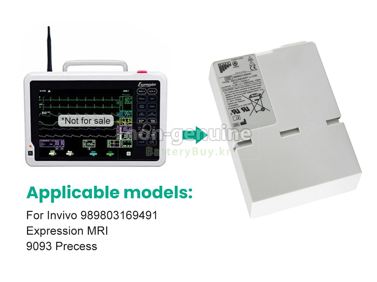 2 고객님의 원 Invivo EXPRESSION MRI 배터리의 전압과 용량이 당사 제품과의 일치여부를 확인 후 당사의 확대 이미지에서 인터페이스, 대체적인 모양의 일치 여부를 확인하십시오.
