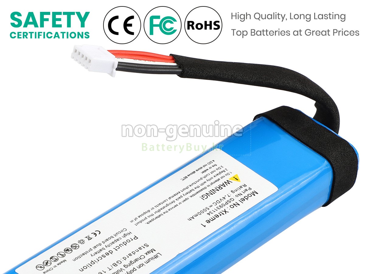 본 새로운 JBL GSP0931134 대체용 배터리는 삼성, 파나소닉과 LG 등 오리지날 공장의 고품질 리튬이온셀을 적용하였고, 배터리의 케이스는 내용성 ABS플라스틱을 사용한 제품입니다. BatteryBuy.kr는 제품 안전성에 대해 요구가 엄격한 바 해당 JBL GSP0931134 스피커 배터리 제품은 전부KC, CE, UL, ROHS, ISO 9001/9002 등 일련의 안전인증을 통과하여 국제표준에 부합되며 오리지날사의 규격과 100%로 호환가능하며 오리지널 GSP0931134 배터리와 완전 매칭 심지어 초과 가능한 성능을 자랑하고 있습니다. 해당 JBL GSP0931134 배터리의 충/방전 주기는 600회좌우인 바 최적의 배터리 라이프를 선사하고 있습니다.