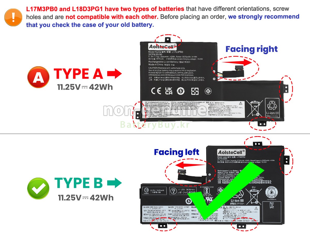 There are 2 types battery, before placing an order please open your laptop to check your old battery first, ensure it's the same as ours. - 상품 번호KRB2104