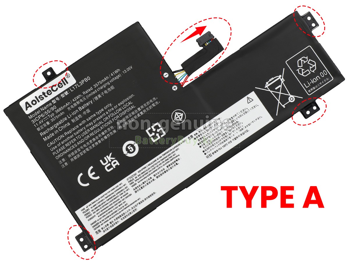 2 고객님의 원 Lenovo 500E Chromebook 배터리의 전압과 용량이 당사 제품과의 일치여부를 확인 후 당사의 확대 이미지에서 인터페이스, 대체적인 모양의 일치 여부를 확인하십시오.