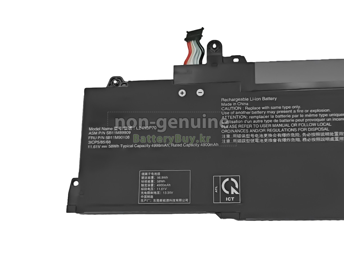 2 고객님의 원 Lenovo 5B11M90105 배터리의 전압과 용량이 당사 제품과의 일치여부를 확인 후 당사의 확대 이미지에서 인터페이스, 대체적인 모양의 일치 여부를 확인하십시오.