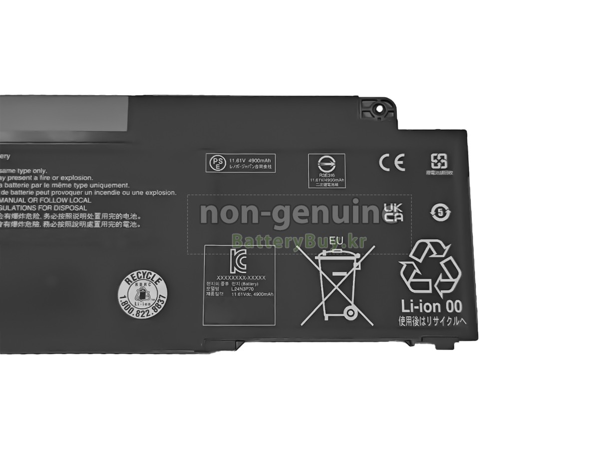 본 새로운 Lenovo 5B11M90105 대체용 배터리는 삼성, 파나소닉과 LG 등 오리지날 공장의 고품질 리튬이온셀을 적용하였고, 배터리의 케이스는 내용성 ABS플라스틱을 사용한 제품입니다. BatteryBuy.kr는 제품 안전성에 대해 요구가 엄격한 바 해당 Lenovo 5B11M90105 배터리 제품은 전부KC, CE, UL, ROHS, ISO 9001/9002 등 일련의 안전인증을 통과하여 국제표준에 부합되며 오리지날사의 규격과 100%로 호환가능하며 오리지널 5B11M90105 배터리와 완전 매칭 심지어 초과 가능한 성능을 자랑하고 있습니다. 해당 Lenovo 5B11M90105 배터리의 충/방전 주기는 600회좌우인 바 최적의 배터리 라이프를 선사하고 있습니다.