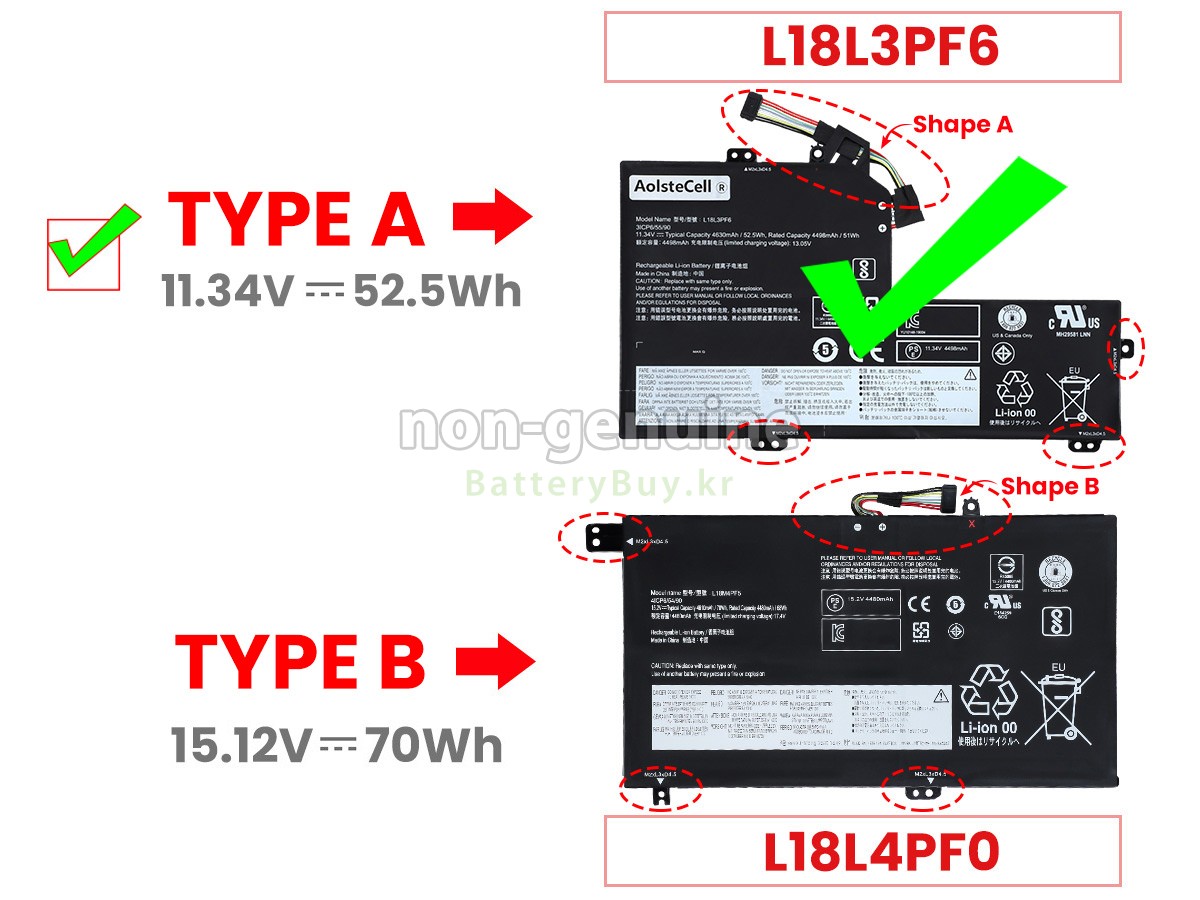2 고객님의 원 Lenovo 81SW003MAK 배터리의 전압과 용량이 당사 제품과의 일치여부를 확인 후 당사의 확대 이미지에서 인터페이스, 대체적인 모양의 일치 여부를 확인하십시오.