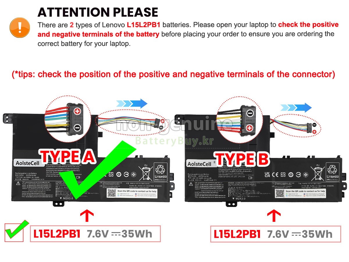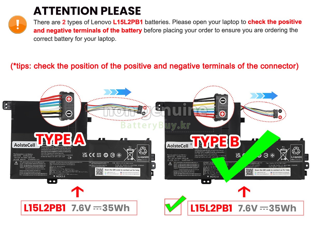 2 고객님의 원 Lenovo L15L2PB1 배터리의 전압과 용량이 당사 제품과의 일치여부를 확인 후 당사의 확대 이미지에서 인터페이스, 대체적인 모양의 일치 여부를 확인하십시오.