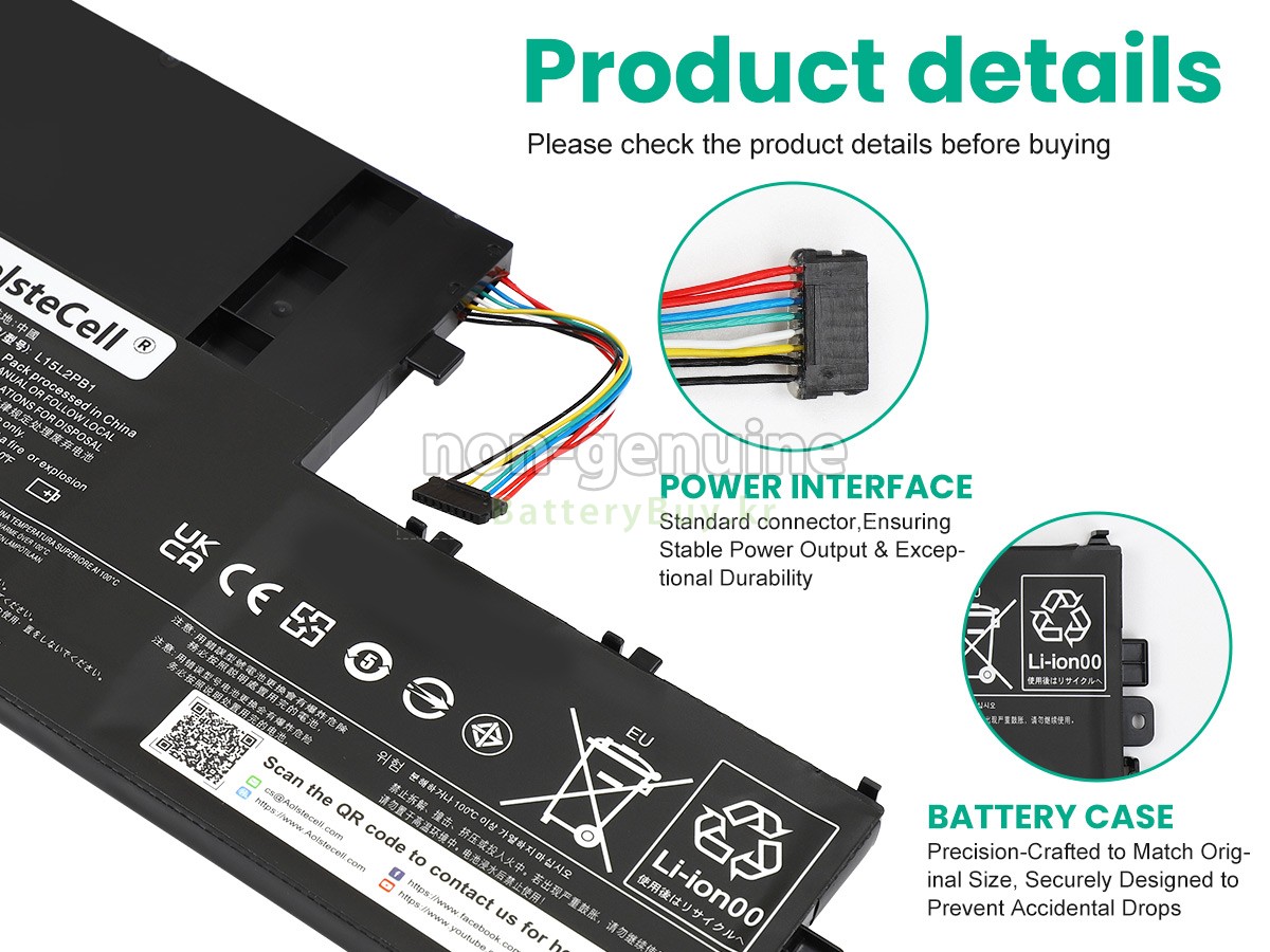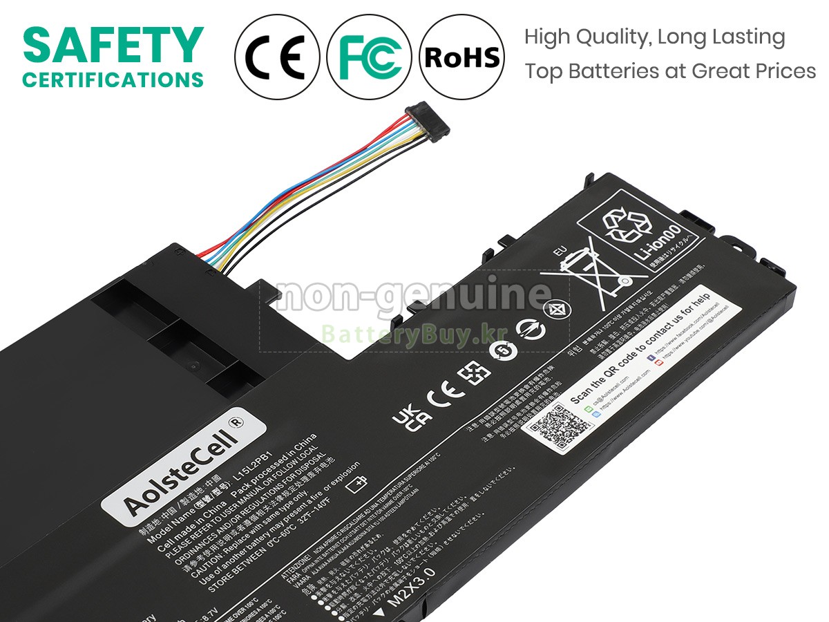 본 새로운 Lenovo L15L2PB1 대체용 배터리는 삼성, 파나소닉과 LG 등 오리지날 공장의 고품질 리튬이온셀을 적용하였고, 배터리의 케이스는 내용성 ABS플라스틱을 사용한 제품입니다. BatteryBuy.kr는 제품 안전성에 대해 요구가 엄격한 바 해당 Lenovo L15L2PB1 배터리 제품은 전부KC, CE, UL, ROHS, ISO 9001/9002 등 일련의 안전인증을 통과하여 국제표준에 부합되며 오리지날사의 규격과 100%로 호환가능하며 오리지널 L15L2PB1 배터리와 완전 매칭 심지어 초과 가능한 성능을 자랑하고 있습니다. 해당 Lenovo L15L2PB1 배터리의 충/방전 주기는 600회좌우인 바 최적의 배터리 라이프를 선사하고 있습니다.