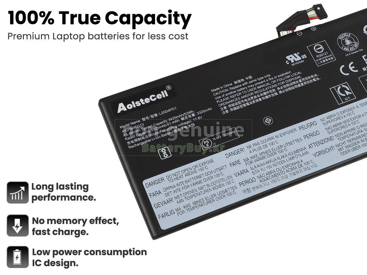 고품질 Lenovo L20D4PD1 대체 배터리 (53Wh, 4셀)