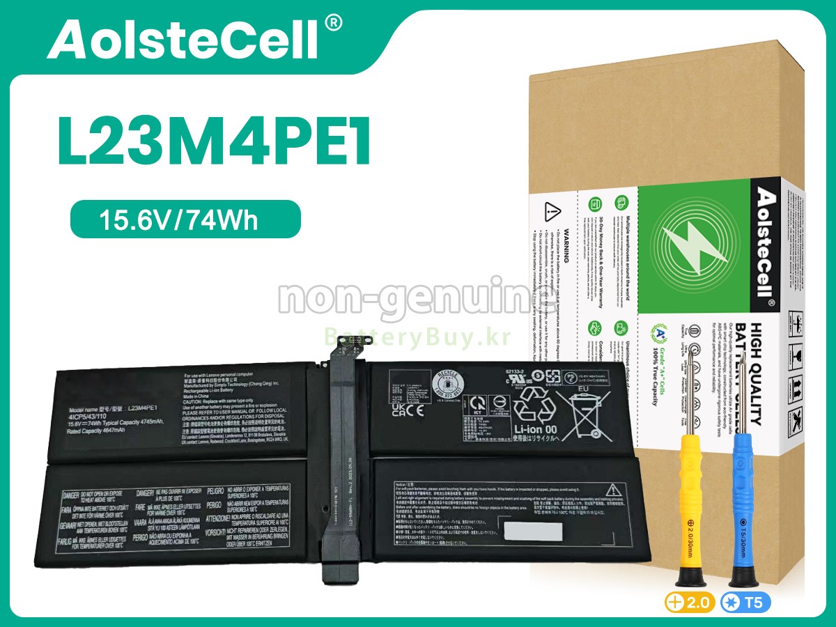 본 새로운 Lenovo L23M4PE1 대체용 배터리는 삼성, 파나소닉과 LG 등 오리지날 공장의 고품질 리튬이온셀을 적용하였고, 배터리의 케이스는 내용성 ABS플라스틱을 사용한 제품입니다. BatteryBuy.kr는 제품 안전성에 대해 요구가 엄격한 바 해당 Lenovo L23M4PE1 배터리 제품은 전부KC, CE, UL, ROHS, ISO 9001/9002 등 일련의 안전인증을 통과하여 국제표준에 부합되며 오리지날사의 규격과 100%로 호환가능하며 오리지널 L23M4PE1 배터리와 완전 매칭 심지어 초과 가능한 성능을 자랑하고 있습니다. 해당 Lenovo L23M4PE1 배터리의 충/방전 주기는 600회좌우인 바 최적의 배터리 라이프를 선사하고 있습니다.