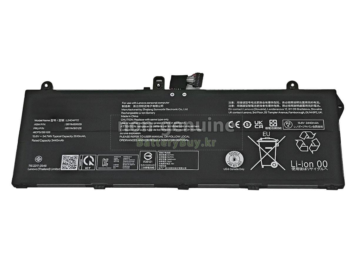 본 새로운 Lenovo L24C4P72 대체용 배터리는 삼성, 파나소닉과 LG 등 오리지날 공장의 고품질 리튬이온셀을 적용하였고, 배터리의 케이스는 내용성 ABS플라스틱을 사용한 제품입니다. BatteryBuy.kr는 제품 안전성에 대해 요구가 엄격한 바 해당 Lenovo L24C4P72 배터리 제품은 전부KC, CE, UL, ROHS, ISO 9001/9002 등 일련의 안전인증을 통과하여 국제표준에 부합되며 오리지날사의 규격과 100%로 호환가능하며 오리지널 L24C4P72 배터리와 완전 매칭 심지어 초과 가능한 성능을 자랑하고 있습니다. 해당 Lenovo L24C4P72 배터리의 충/방전 주기는 600회좌우인 바 최적의 배터리 라이프를 선사하고 있습니다.