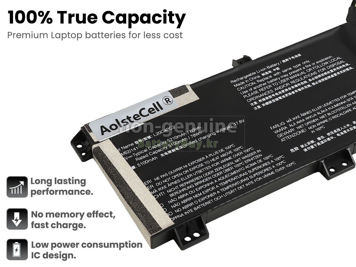 고품질 Lenovo LEGION 5 17ACH6H-82JY00GDUK 대체 배터리 (80Wh, 4셀)