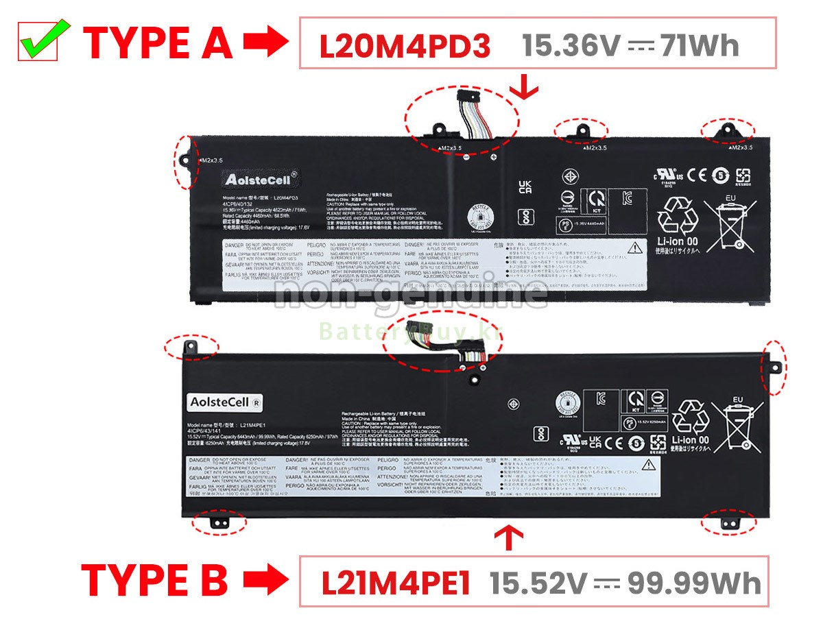 2 고객님의 원 Lenovo LEGION S7 15ACH6-82K800D2TA 배터리의 전압과 용량이 당사 제품과의 일치여부를 확인 후 당사의 확대 이미지에서 인터페이스, 대체적인 모양의 일치 여부를 확인하십시오.