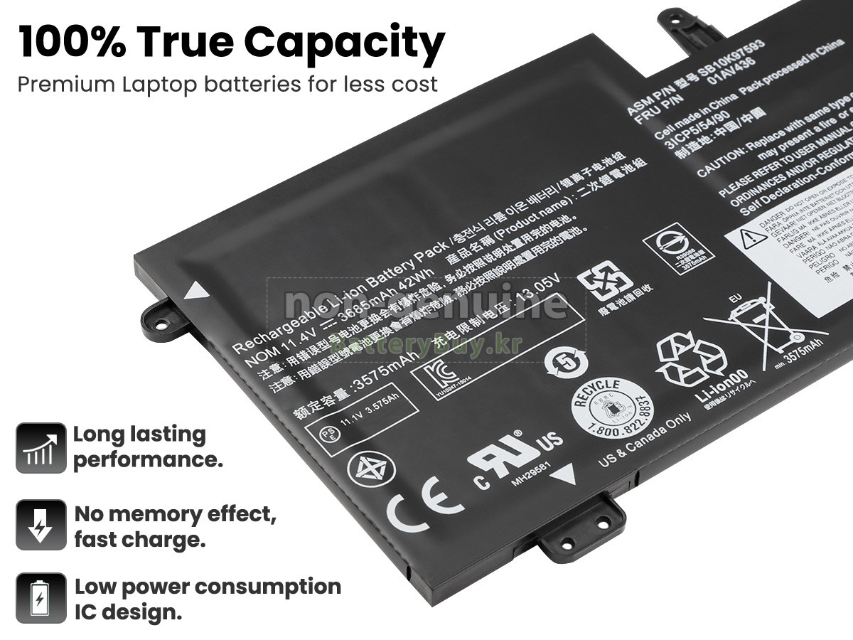 고품질 Lenovo SB10K97592 대체 배터리 (42Wh, 3셀)