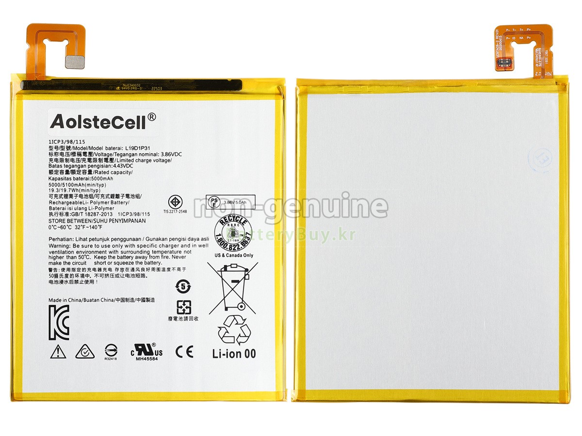 본 새로운 Lenovo TB-8506F 대체용 배터리는 삼성, 파나소닉과 LG 등 오리지날 공장의 고품질 리튬이온셀을 적용하였고, 배터리의 케이스는 내용성 ABS플라스틱을 사용한 제품입니다. BatteryBuy.kr는 제품 안전성에 대해 요구가 엄격한 바 해당 Lenovo TB-8506F 배터리 제품은 전부KC, CE, UL, ROHS, ISO 9001/9002 등 일련의 안전인증을 통과하여 국제표준에 부합되며 오리지날사의 규격과 100%로 호환가능하며 오리지널 TB-8506F 배터리와 완전 매칭 심지어 초과 가능한 성능을 자랑하고 있습니다. 해당 Lenovo TB-8506F 배터리의 충/방전 주기는 600회좌우인 바 최적의 배터리 라이프를 선사하고 있습니다.