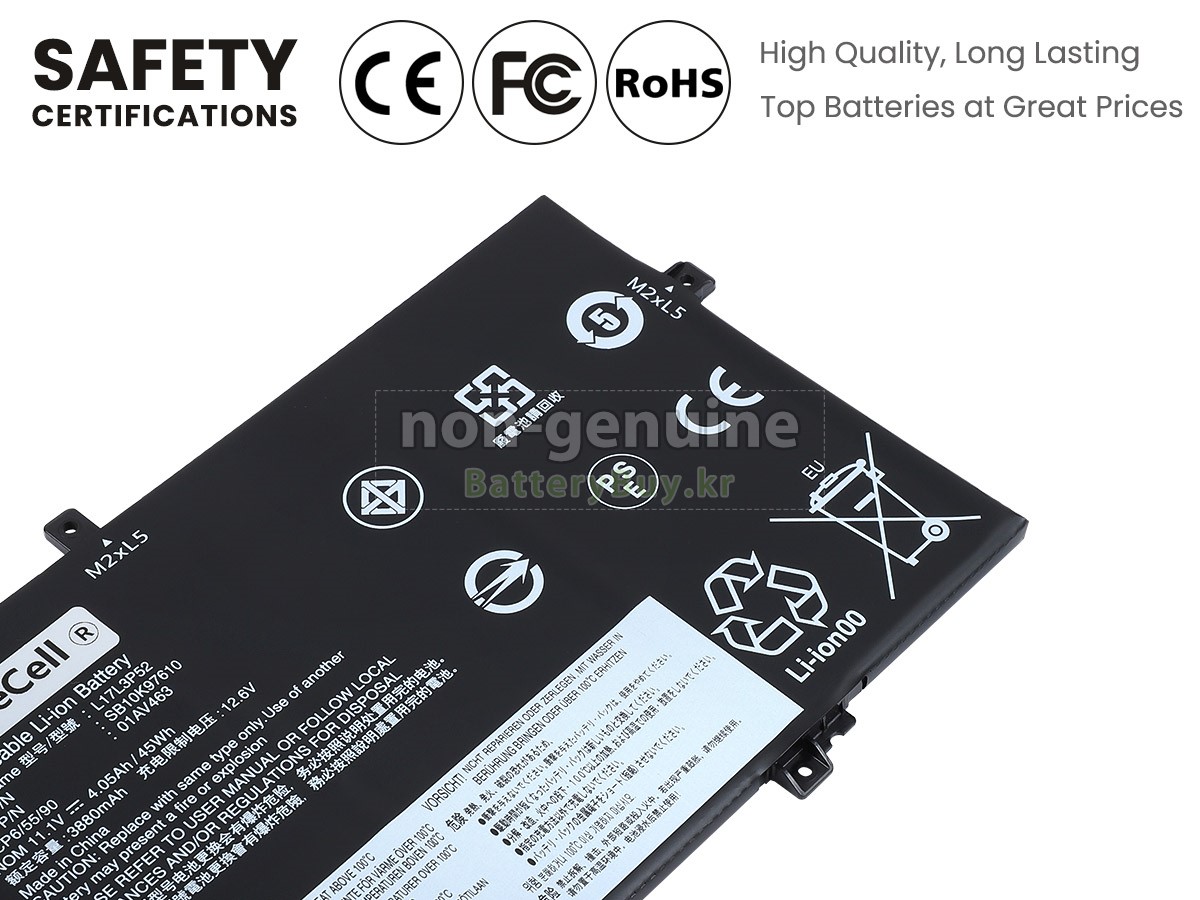 본 새로운 Lenovo ThinkPad L14-20U1007NGR 대체용 배터리는 삼성, 파나소닉과 LG 등 오리지날 공장의 고품질 리튬이온셀을 적용하였고, 배터리의 케이스는 내용성 ABS플라스틱을 사용한 제품입니다. BatteryBuy.kr는 제품 안전성에 대해 요구가 엄격한 바 해당 Lenovo ThinkPad L14-20U1007NGR 배터리 제품은 전부KC, CE, UL, ROHS, ISO 9001/9002 등 일련의 안전인증을 통과하여 국제표준에 부합되며 오리지날사의 규격과 100%로 호환가능하며 오리지널 ThinkPad L14-20U1007NGR 배터리와 완전 매칭 심지어 초과 가능한 성능을 자랑하고 있습니다. 해당 Lenovo ThinkPad L14-20U1007NGR 배터리의 충/방전 주기는 600회좌우인 바 최적의 배터리 라이프를 선사하고 있습니다.
