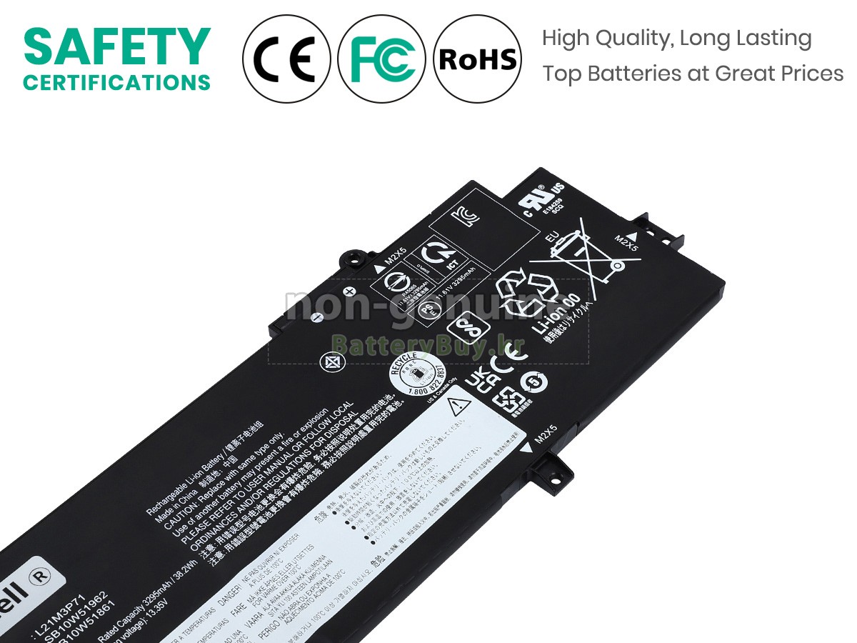 2 고객님의 원 Lenovo ThinkPad P14S GEN 3 (INTEL)-21AK00AFRA 배터리의 전압과 용량이 당사 제품과의 일치여부를 확인 후 당사의 확대 이미지에서 인터페이스, 대체적인 모양의 일치 여부를 확인하십시오.