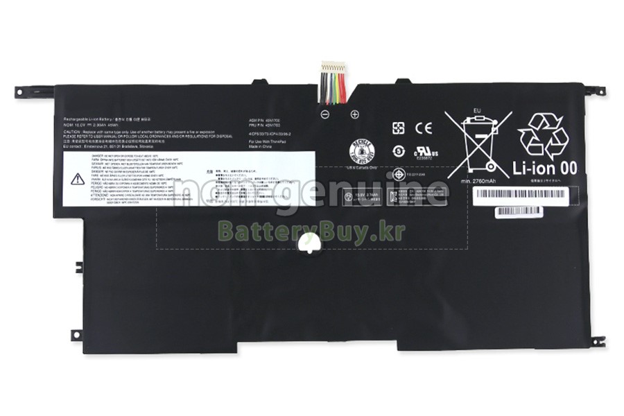 본 새로운 Lenovo ThinkPad X1 CARBON 2ND GEN 대체용 배터리는 삼성, 파나소닉과 LG 등 오리지날 공장의 고품질 리튬이온셀을 적용하였고, 배터리의 케이스는 내용성 ABS플라스틱을 사용한 제품입니다. BatteryBuy.kr는 제품 안전성에 대해 요구가 엄격한 바 해당 Lenovo ThinkPad X1 CARBON 2ND GEN 배터리 제품은 전부KC, CE, UL, ROHS, ISO 9001/9002 등 일련의 안전인증을 통과하여 국제표준에 부합되며 오리지날사의 규격과 100%로 호환가능하며 오리지널 ThinkPad X1 CARBON 2ND GEN 배터리와 완전 매칭 심지어 초과 가능한 성능을 자랑하고 있습니다. 해당 Lenovo ThinkPad X1 CARBON 2ND GEN 배터리의 충/방전 주기는 600회좌우인 바 최적의 배터리 라이프를 선사하고 있습니다.