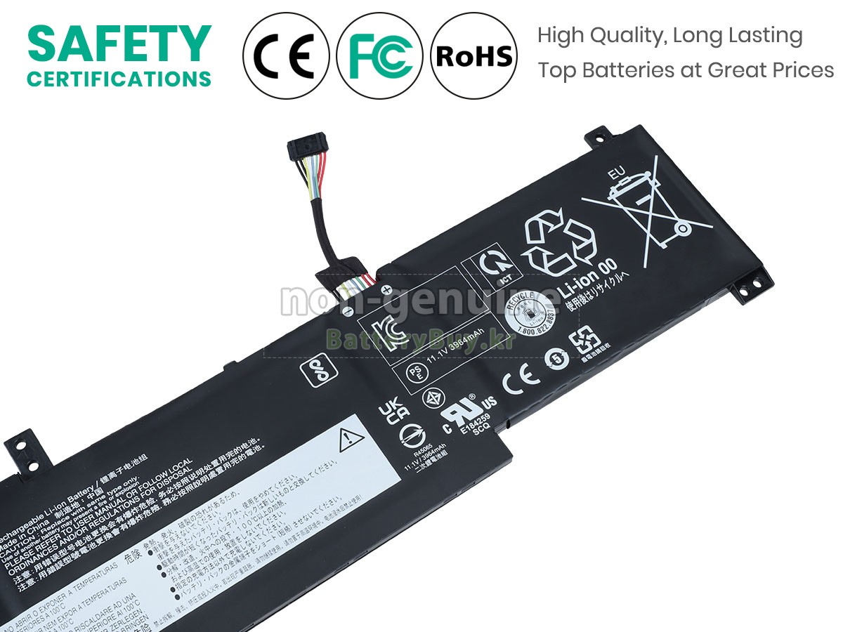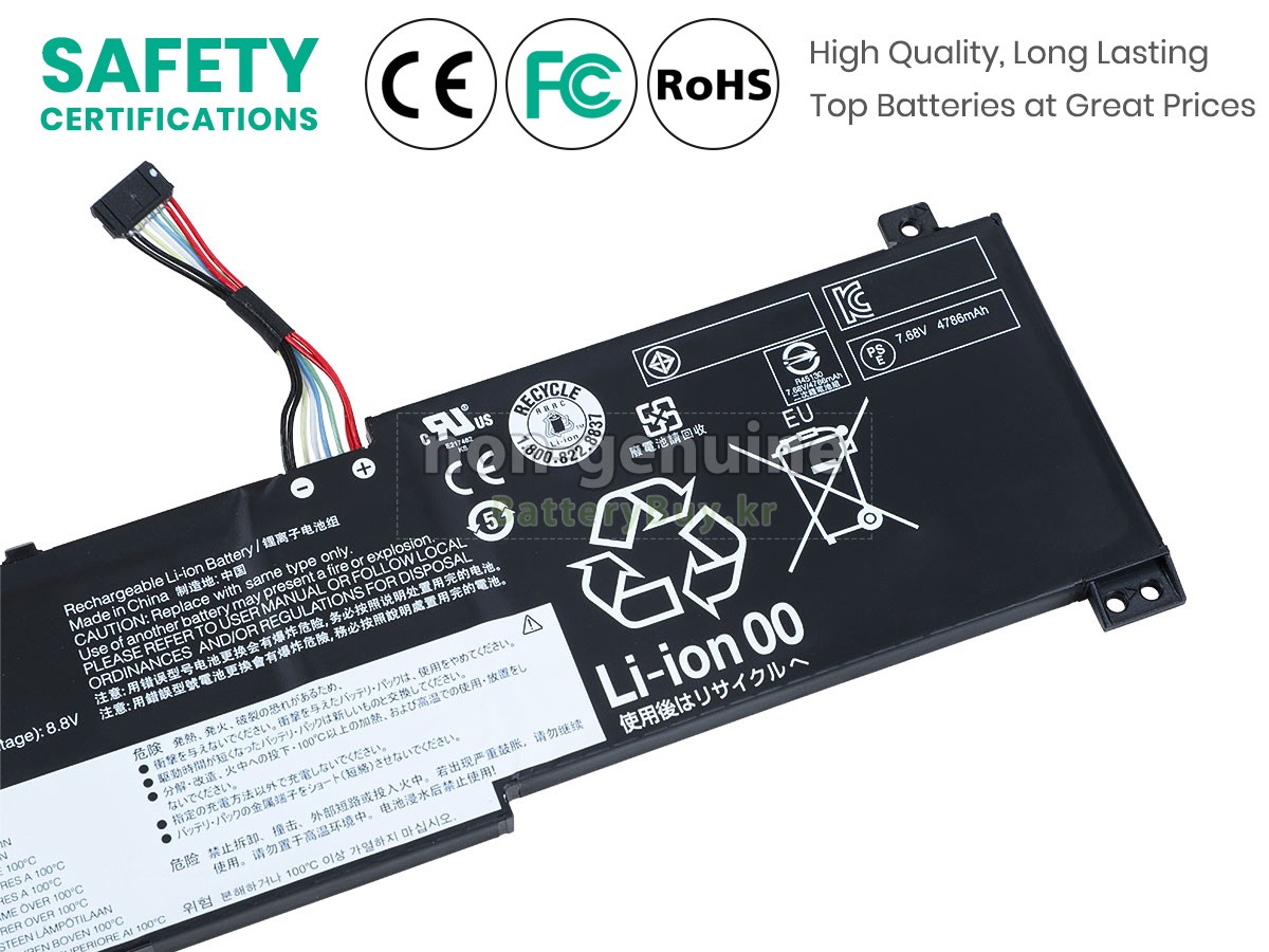 본 새로운 Lenovo V17 G2 ITL-82NX00CGSC 대체용 배터리는 삼성, 파나소닉과 LG 등 오리지날 공장의 고품질 리튬이온셀을 적용하였고, 배터리의 케이스는 내용성 ABS플라스틱을 사용한 제품입니다. BatteryBuy.kr는 제품 안전성에 대해 요구가 엄격한 바 해당 Lenovo V17 G2 ITL-82NX00CGSC 배터리 제품은 전부KC, CE, UL, ROHS, ISO 9001/9002 등 일련의 안전인증을 통과하여 국제표준에 부합되며 오리지날사의 규격과 100%로 호환가능하며 오리지널 V17 G2 ITL-82NX00CGSC 배터리와 완전 매칭 심지어 초과 가능한 성능을 자랑하고 있습니다. 해당 Lenovo V17 G2 ITL-82NX00CGSC 배터리의 충/방전 주기는 600회좌우인 바 최적의 배터리 라이프를 선사하고 있습니다.