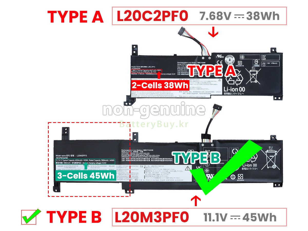 2 고객님의 원 Lenovo V17 G2 ITL-82NX00CGSC 배터리의 전압과 용량이 당사 제품과의 일치여부를 확인 후 당사의 확대 이미지에서 인터페이스, 대체적인 모양의 일치 여부를 확인하십시오.