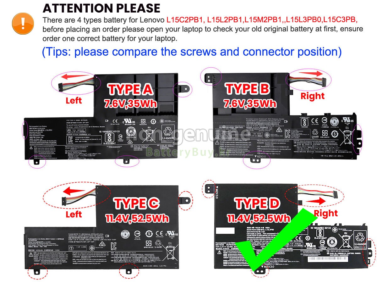 2 고객님의 원 Lenovo YOGA 510-14IKB 배터리의 전압과 용량이 당사 제품과의 일치여부를 확인 후 당사의 확대 이미지에서 인터페이스, 대체적인 모양의 일치 여부를 확인하십시오.