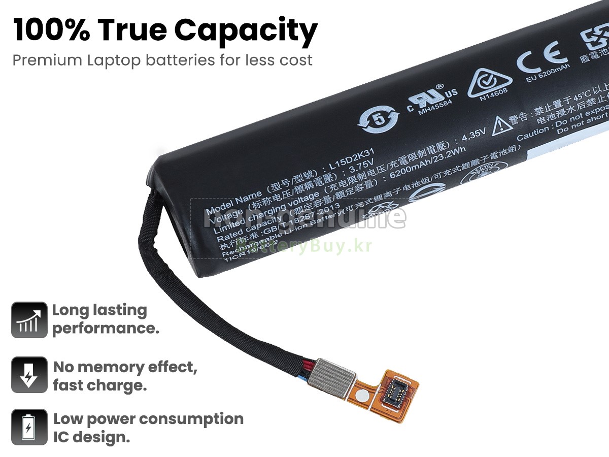 본 새로운 Lenovo YOGA TAB 3 8-850F 대체용 배터리는 삼성, 파나소닉과 LG 등 오리지날 공장의 고품질 리튬이온셀을 적용하였고, 배터리의 케이스는 내용성 ABS플라스틱을 사용한 제품입니다. BatteryBuy.kr는 제품 안전성에 대해 요구가 엄격한 바 해당 Lenovo YOGA TAB 3 8-850F 배터리 제품은 전부KC, CE, UL, ROHS, ISO 9001/9002 등 일련의 안전인증을 통과하여 국제표준에 부합되며 오리지날사의 규격과 100%로 호환가능하며 오리지널 YOGA TAB 3 8-850F 배터리와 완전 매칭 심지어 초과 가능한 성능을 자랑하고 있습니다. 해당 Lenovo YOGA TAB 3 8-850F 배터리의 충/방전 주기는 600회좌우인 바 최적의 배터리 라이프를 선사하고 있습니다.