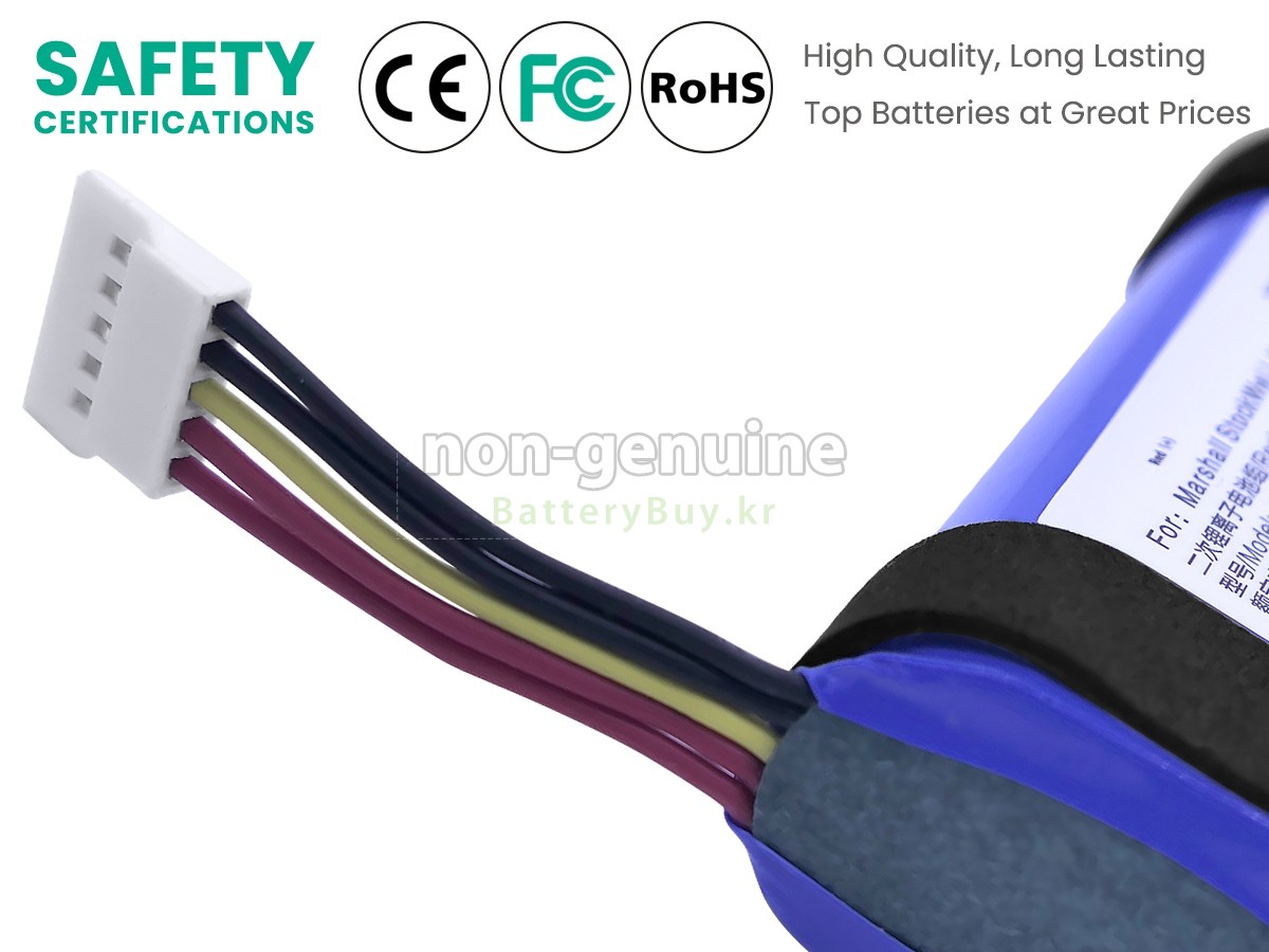 본 새로운 Marshall STOCKWELL 2 C406A3-1 대체용 배터리는 삼성, 파나소닉과 LG 등 오리지날 공장의 고품질 리튬이온셀을 적용하였고, 배터리의 케이스는 내용성 ABS플라스틱을 사용한 제품입니다. BatteryBuy.kr는 제품 안전성에 대해 요구가 엄격한 바 해당 Marshall STOCKWELL 2 C406A3-1 스피커 배터리 제품은 전부KC, CE, UL, ROHS, ISO 9001/9002 등 일련의 안전인증을 통과하여 국제표준에 부합되며 오리지날사의 규격과 100%로 호환가능하며 오리지널 STOCKWELL 2 C406A3-1 배터리와 완전 매칭 심지어 초과 가능한 성능을 자랑하고 있습니다. 해당 Marshall STOCKWELL 2 C406A3-1 배터리의 충/방전 주기는 600회좌우인 바 최적의 배터리 라이프를 선사하고 있습니다.