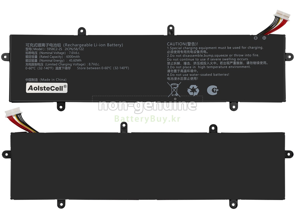 본 새로운 Mechrevo 5958C2-2S 대체용 배터리는 삼성, 파나소닉과 LG 등 오리지날 공장의 고품질 리튬이온셀을 적용하였고, 배터리의 케이스는 내용성 ABS플라스틱을 사용한 제품입니다. BatteryBuy.kr는 제품 안전성에 대해 요구가 엄격한 바 해당 Mechrevo 5958C2-2S 배터리 제품은 전부KC, CE, UL, ROHS, ISO 9001/9002 등 일련의 안전인증을 통과하여 국제표준에 부합되며 오리지날사의 규격과 100%로 호환가능하며 오리지널 5958C2-2S 배터리와 완전 매칭 심지어 초과 가능한 성능을 자랑하고 있습니다. 해당 Mechrevo 5958C2-2S 배터리의 충/방전 주기는 600회좌우인 바 최적의 배터리 라이프를 선사하고 있습니다.
