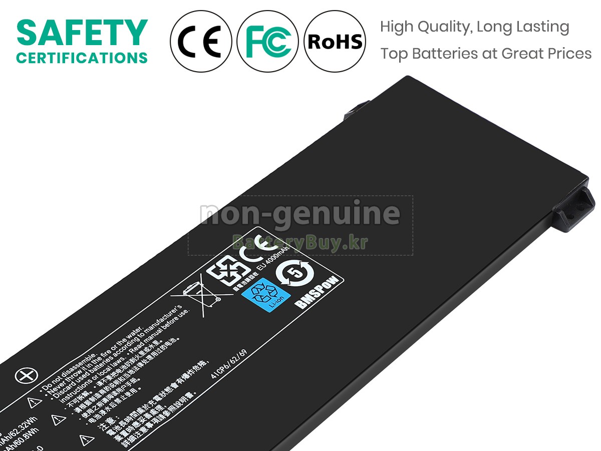 본 새로운 Mechrevo GKIDY-03-17-4S1P-0 대체용 배터리는 삼성, 파나소닉과 LG 등 오리지날 공장의 고품질 리튬이온셀을 적용하였고, 배터리의 케이스는 내용성 ABS플라스틱을 사용한 제품입니다. BatteryBuy.kr는 제품 안전성에 대해 요구가 엄격한 바 해당 Mechrevo GKIDY-03-17-4S1P-0 배터리 제품은 전부KC, CE, UL, ROHS, ISO 9001/9002 등 일련의 안전인증을 통과하여 국제표준에 부합되며 오리지날사의 규격과 100%로 호환가능하며 오리지널 GKIDY-03-17-4S1P-0 배터리와 완전 매칭 심지어 초과 가능한 성능을 자랑하고 있습니다. 해당 Mechrevo GKIDY-03-17-4S1P-0 배터리의 충/방전 주기는 600회좌우인 바 최적의 배터리 라이프를 선사하고 있습니다.