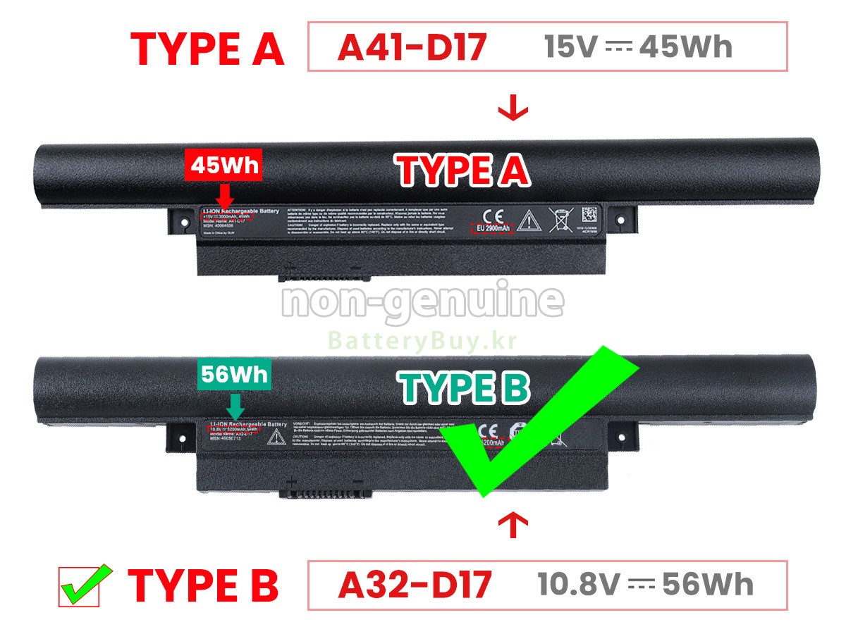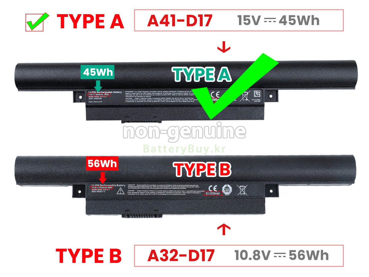 This battery can replacement for the 15V/45Wh battery. IF your laptop model is Medion Erazer P7643, Erazer P7644,Erazer P7652,Akoya E7416,Akoya E7424 please do not order this 6 cells battery. - 상품 번호KRB2137