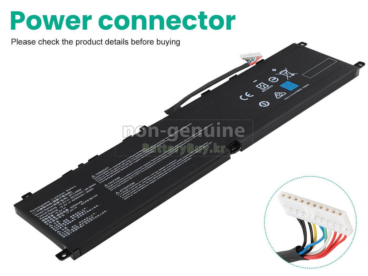 2 고객님의 원 MSI GE76 RAIDER 10UG 배터리의 전압과 용량이 당사 제품과의 일치여부를 확인 후 당사의 확대 이미지에서 인터페이스, 대체적인 모양의 일치 여부를 확인하십시오.