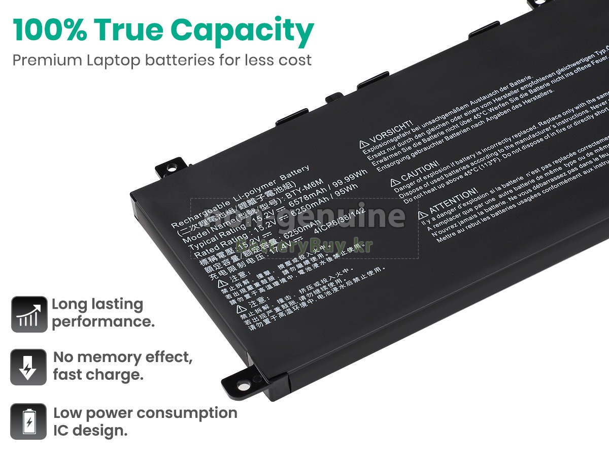 고품질 MSI GE76 RAIDER 10UG 대체 배터리 (99.99Wh, 4셀)