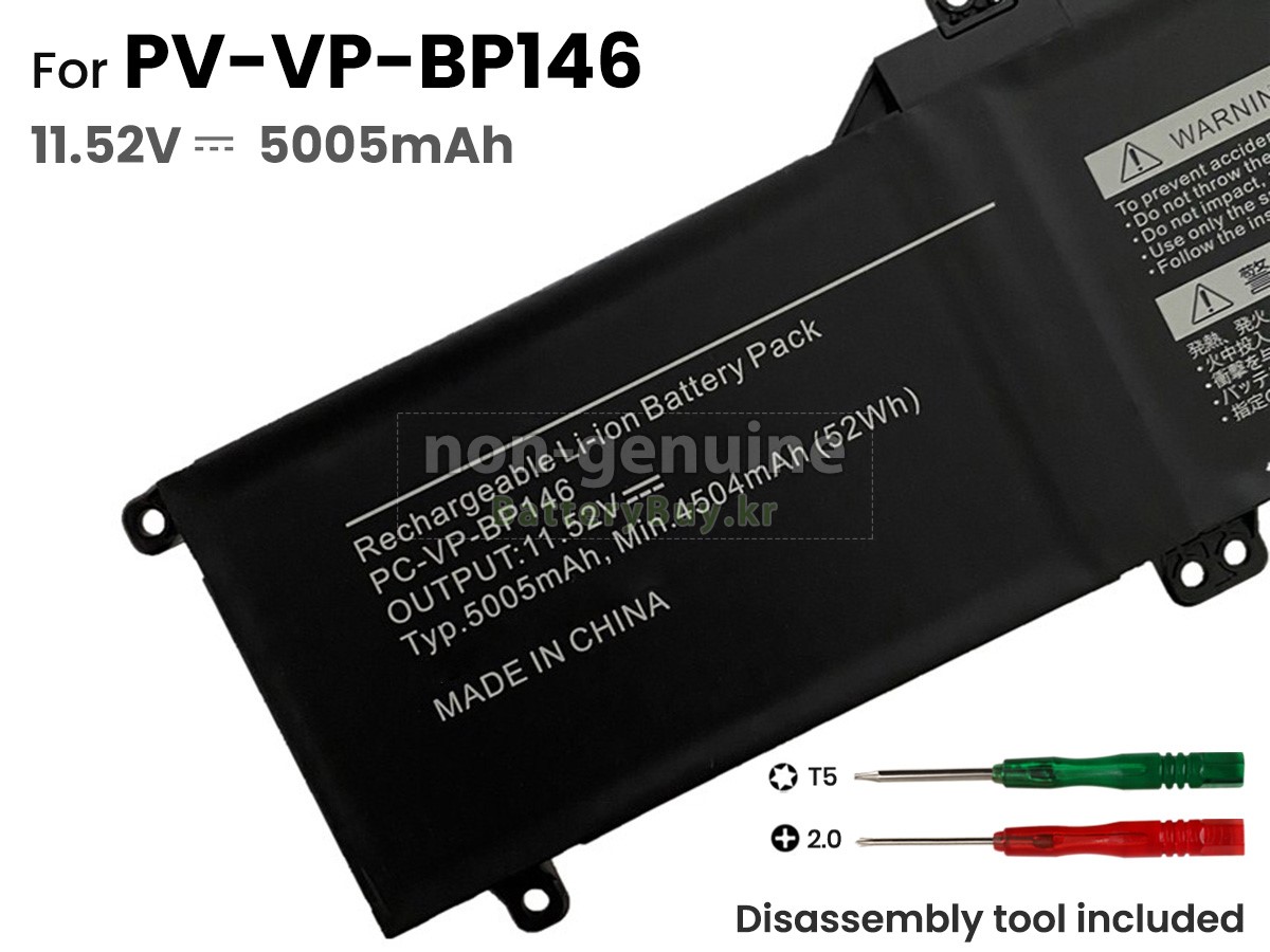 본 새로운 NEC PC-VP-BP146 대체용 배터리는 삼성, 파나소닉과 LG 등 오리지날 공장의 고품질 리튬이온셀을 적용하였고, 배터리의 케이스는 내용성 ABS플라스틱을 사용한 제품입니다. BatteryBuy.kr는 제품 안전성에 대해 요구가 엄격한 바 해당 NEC PC-VP-BP146 배터리 제품은 전부KC, CE, UL, ROHS, ISO 9001/9002 등 일련의 안전인증을 통과하여 국제표준에 부합되며 오리지날사의 규격과 100%로 호환가능하며 오리지널 PC-VP-BP146 배터리와 완전 매칭 심지어 초과 가능한 성능을 자랑하고 있습니다. 해당 NEC PC-VP-BP146 배터리의 충/방전 주기는 600회좌우인 바 최적의 배터리 라이프를 선사하고 있습니다.
