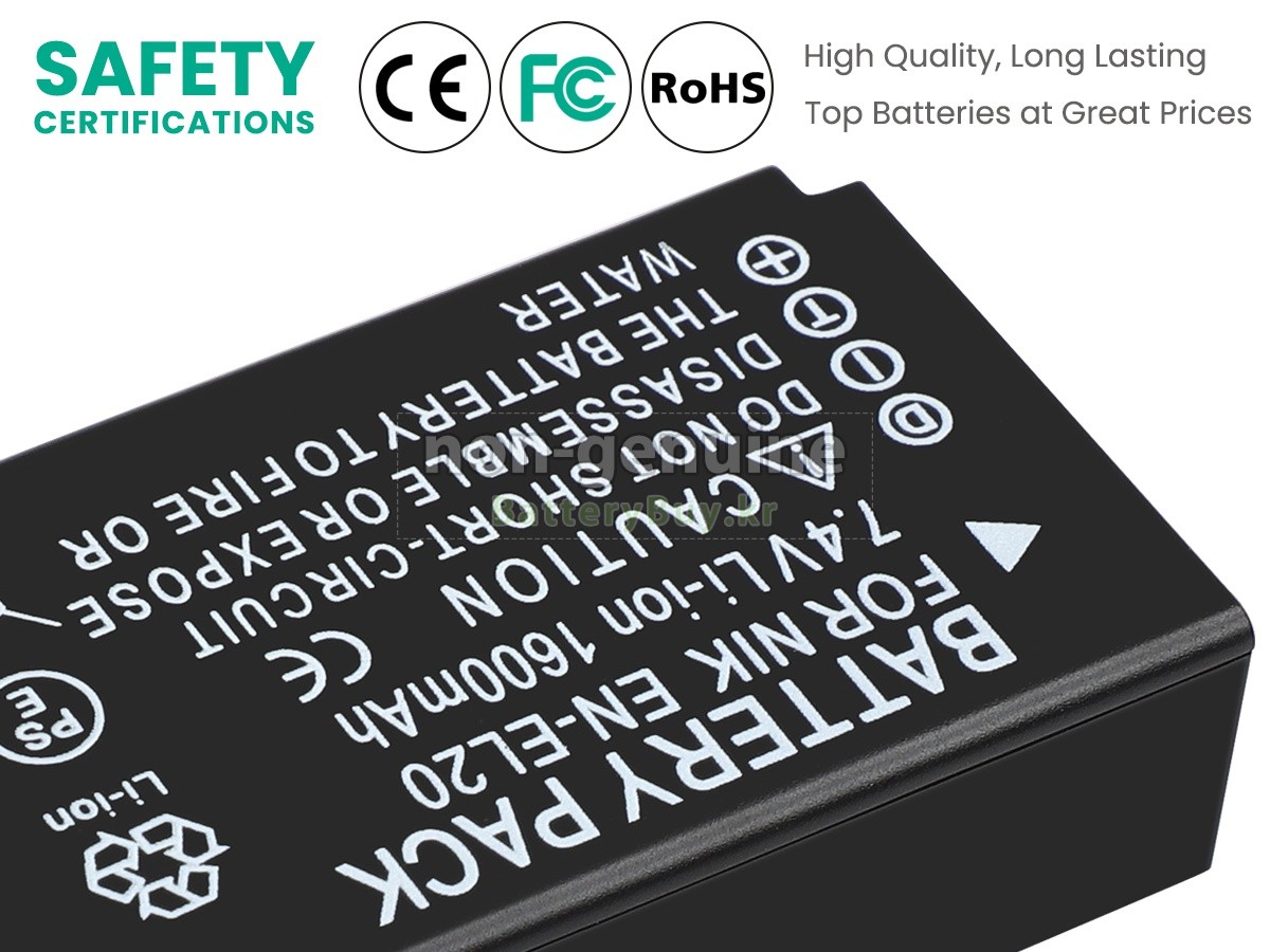 본 새로운 Nikon 1 J3 대체용 배터리는 삼성, 파나소닉과 LG 등 오리지날 공장의 고품질 리튬이온셀을 적용하였고, 배터리의 케이스는 내용성 ABS플라스틱을 사용한 제품입니다. BatteryBuy.kr는 제품 안전성에 대해 요구가 엄격한 바 해당 Nikon 1 J3 배터리 제품은 전부KC, CE, UL, ROHS, ISO 9001/9002 등 일련의 안전인증을 통과하여 국제표준에 부합되며 오리지날사의 규격과 100%로 호환가능하며 오리지널 1 J3 배터리와 완전 매칭 심지어 초과 가능한 성능을 자랑하고 있습니다. 해당 Nikon 1 J3 배터리의 충/방전 주기는 600회좌우인 바 최적의 배터리 라이프를 선사하고 있습니다.