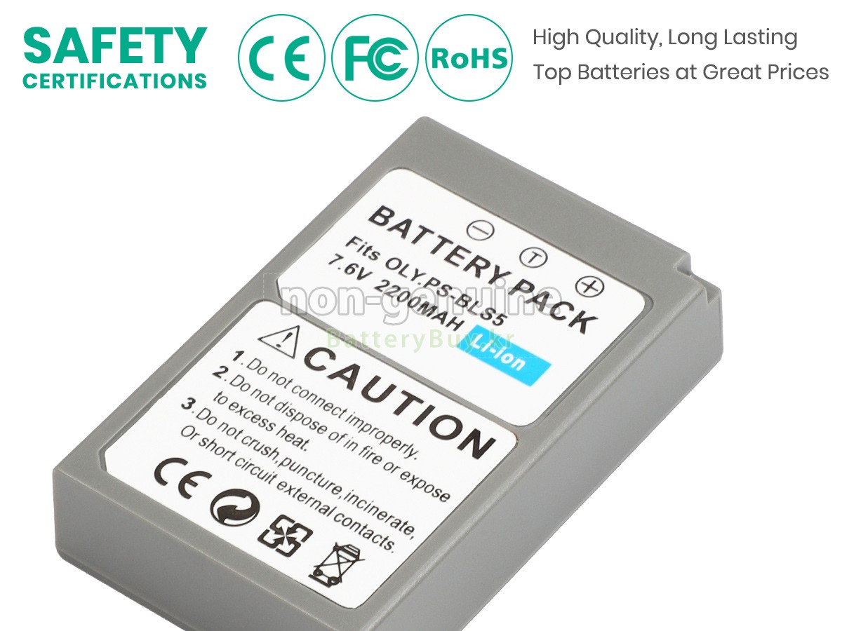 본 새로운 Olympus BLS5 대체용 배터리는 삼성, 파나소닉과 LG 등 오리지날 공장의 고품질 리튬이온셀을 적용하였고, 배터리의 케이스는 내용성 ABS플라스틱을 사용한 제품입니다. BatteryBuy.kr는 제품 안전성에 대해 요구가 엄격한 바 해당 Olympus BLS5 배터리 제품은 전부KC, CE, UL, ROHS, ISO 9001/9002 등 일련의 안전인증을 통과하여 국제표준에 부합되며 오리지날사의 규격과 100%로 호환가능하며 오리지널 BLS5 배터리와 완전 매칭 심지어 초과 가능한 성능을 자랑하고 있습니다. 해당 Olympus BLS5 배터리의 충/방전 주기는 600회좌우인 바 최적의 배터리 라이프를 선사하고 있습니다.