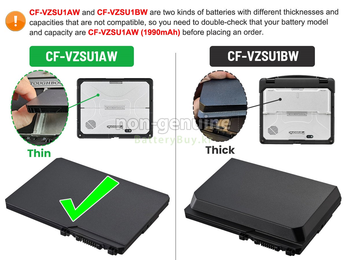 2 고객님의 원 Panasonic CF-33 TOUGHBOOK 배터리의 전압과 용량이 당사 제품과의 일치여부를 확인 후 당사의 확대 이미지에서 인터페이스, 대체적인 모양의 일치 여부를 확인하십시오.